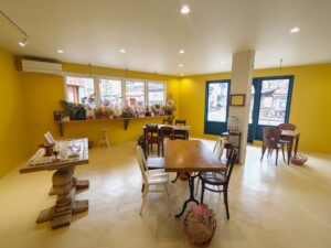 温かみのある木製のテーブルと椅子が並び、ゆったり落ち着く雰囲気でした。