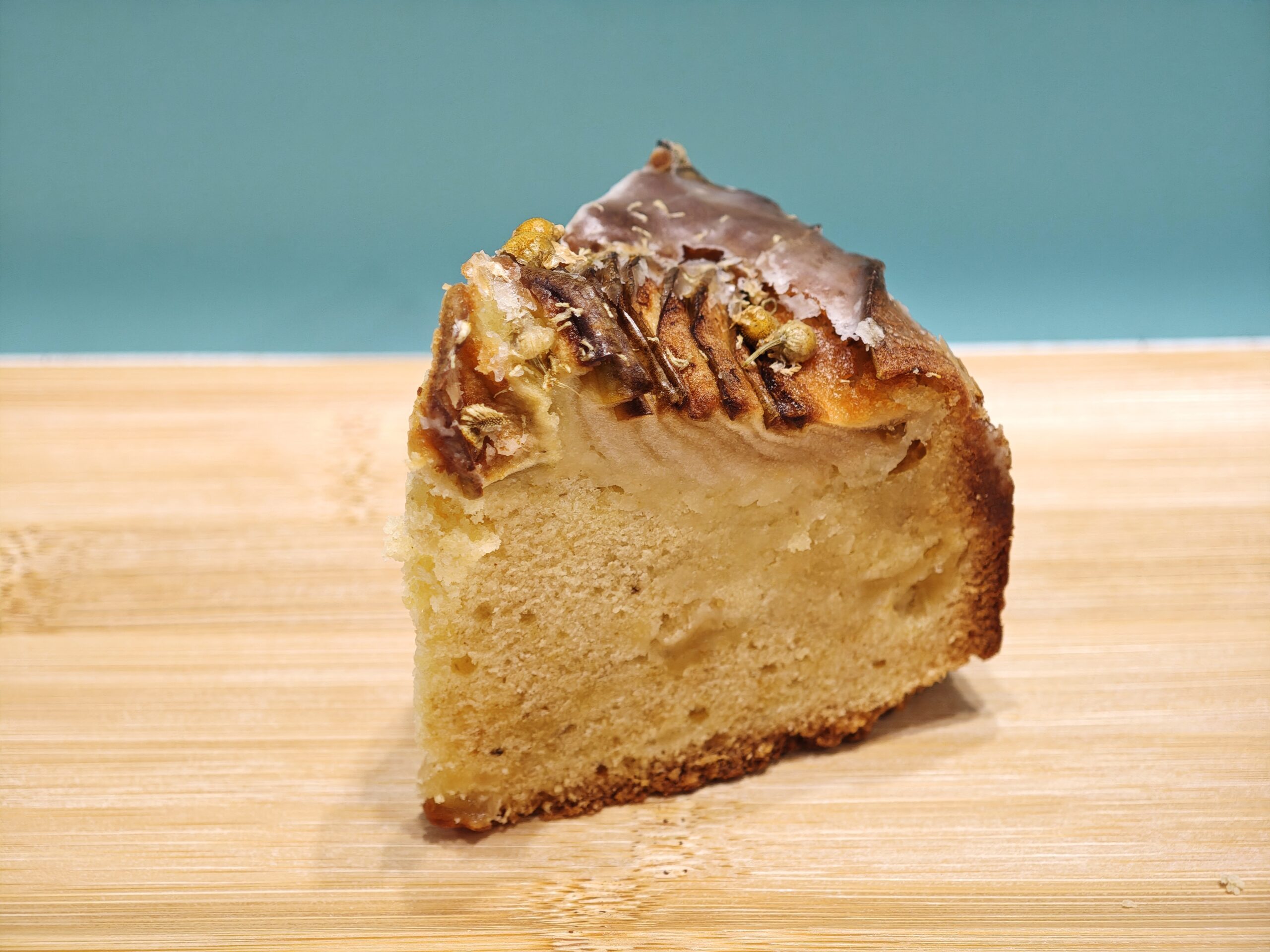 カモミールの花が残ったままのトッピングが印象的なひと品。