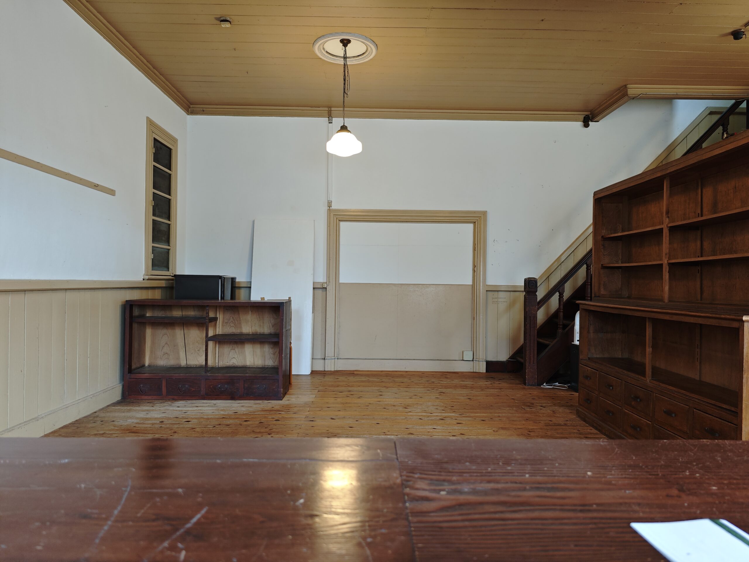 古い建物の棚や床の木目が残り、どこか懐かしい雰囲気。