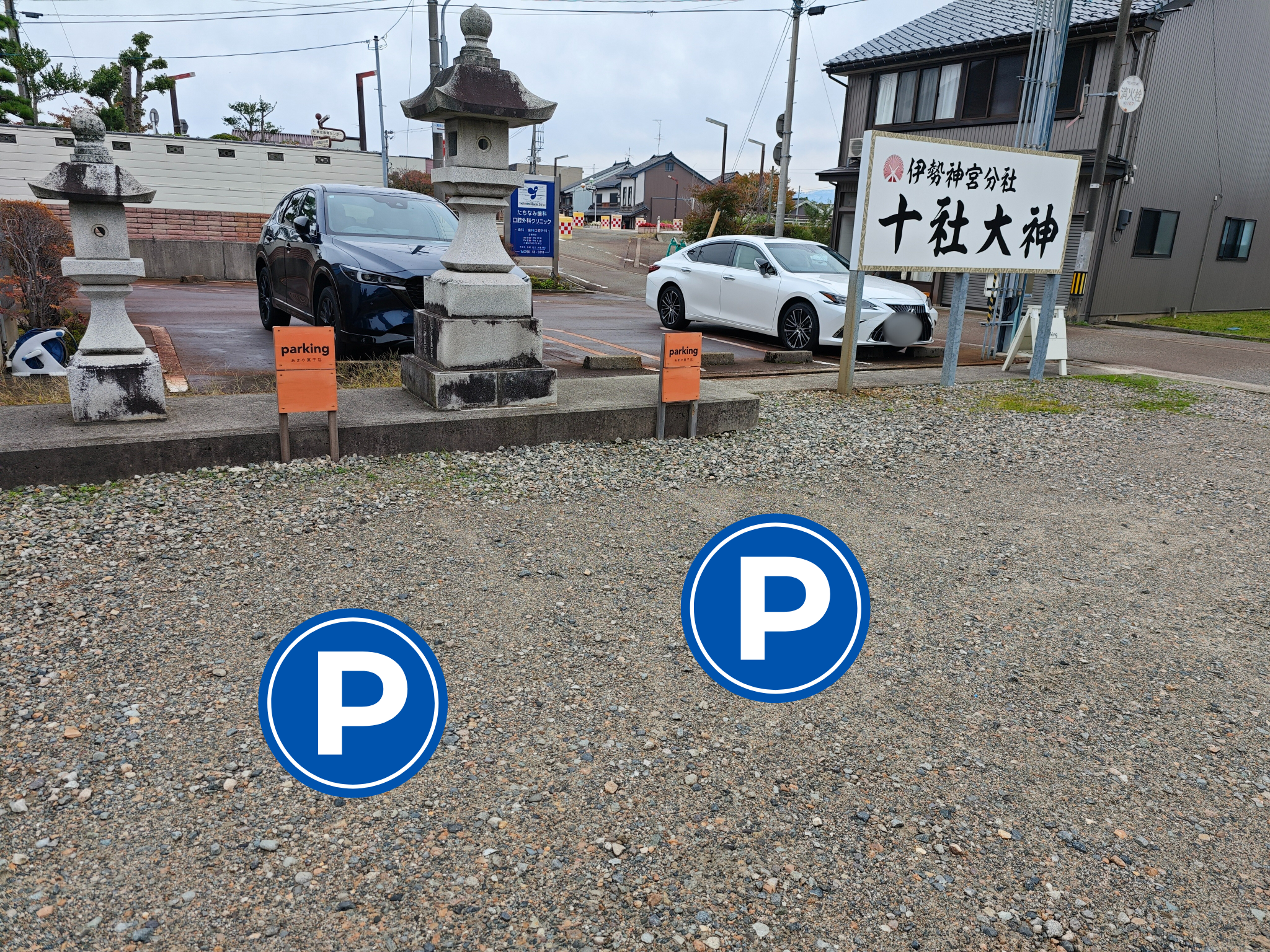 徒歩3〜4分の場所にある十社大神付近に2台分の専用駐車場があります。
