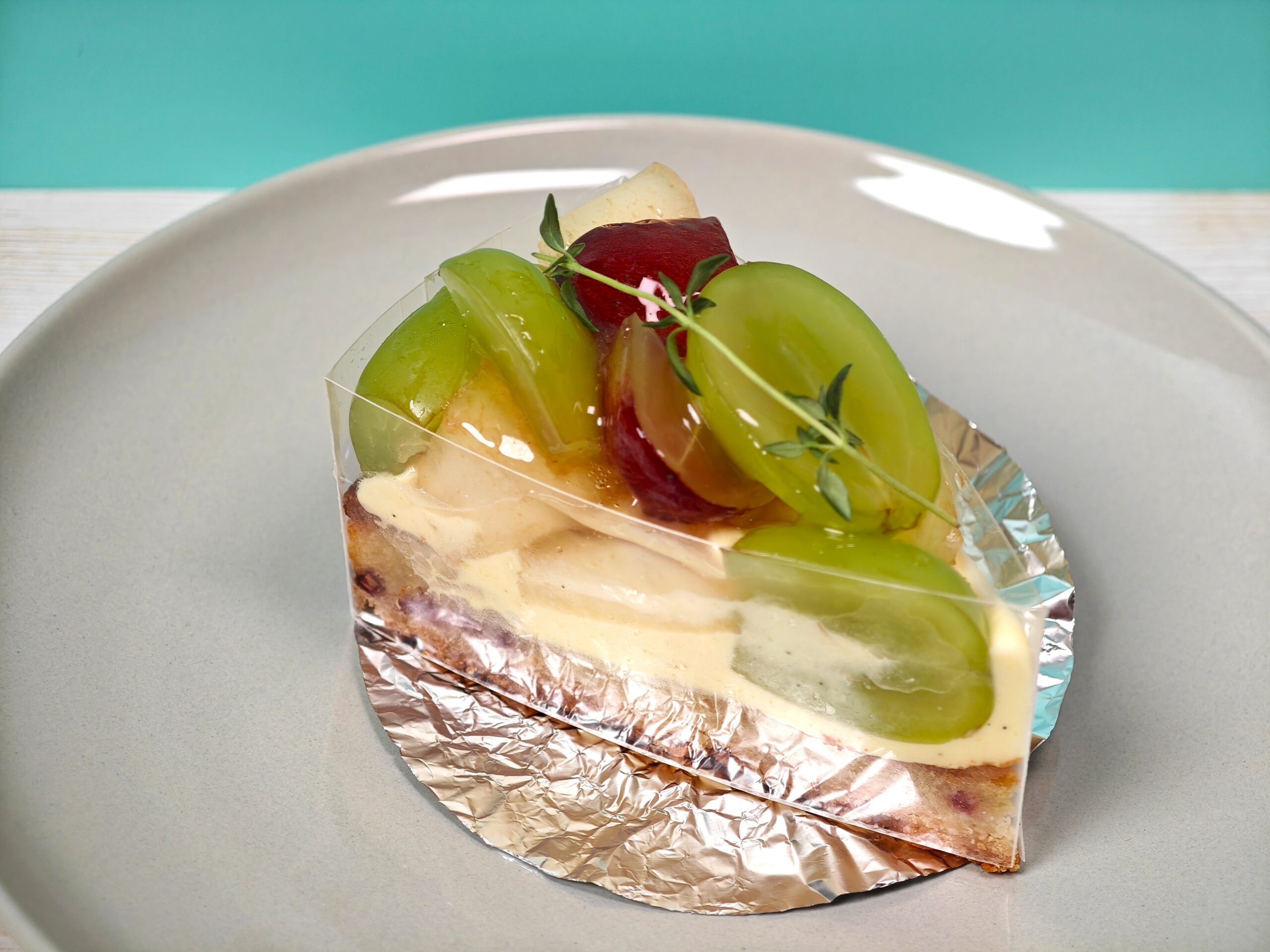 季節のタルトは2種類あり、今回はぶどうと洋ナシのタルトをいただきました。