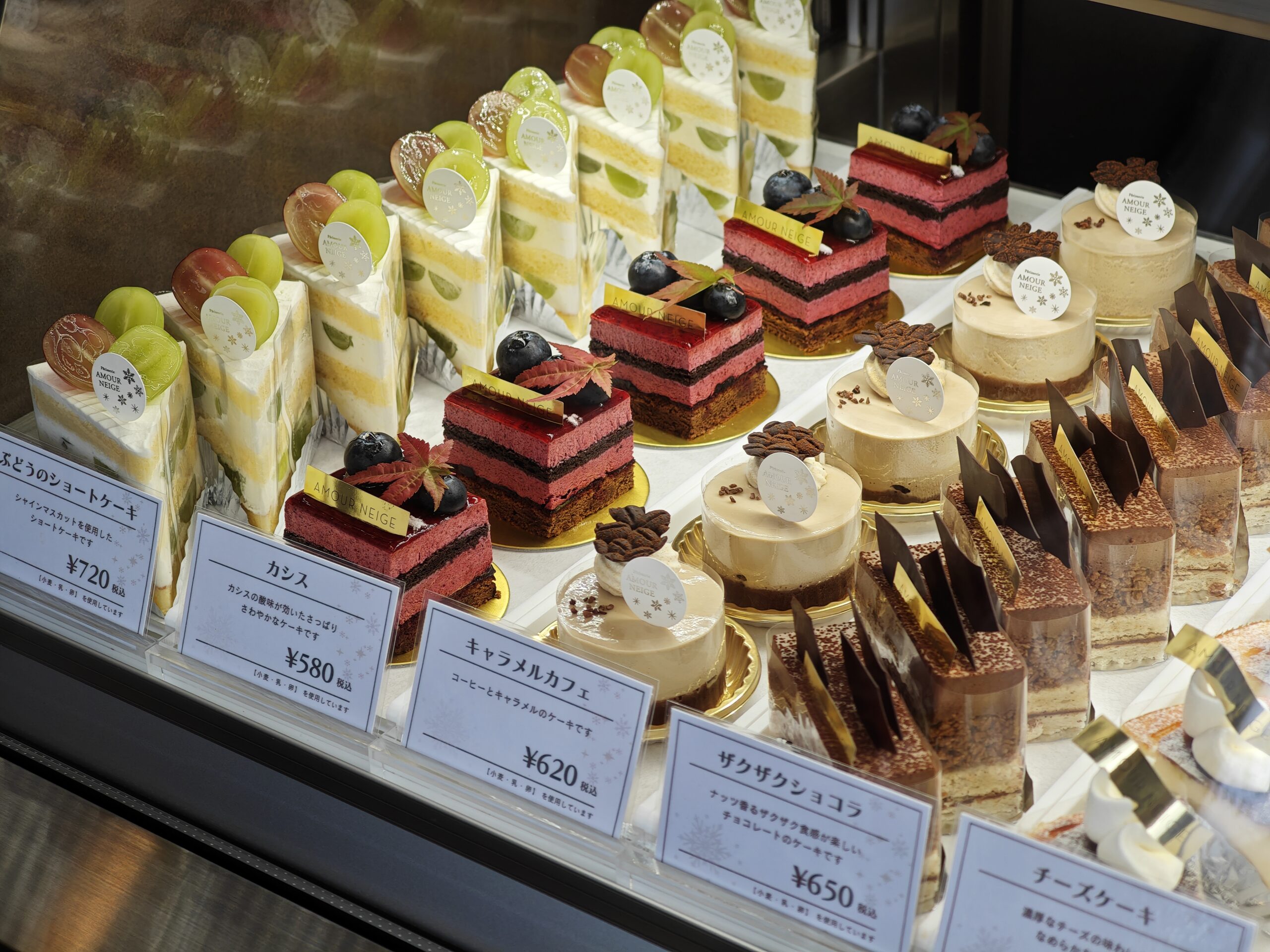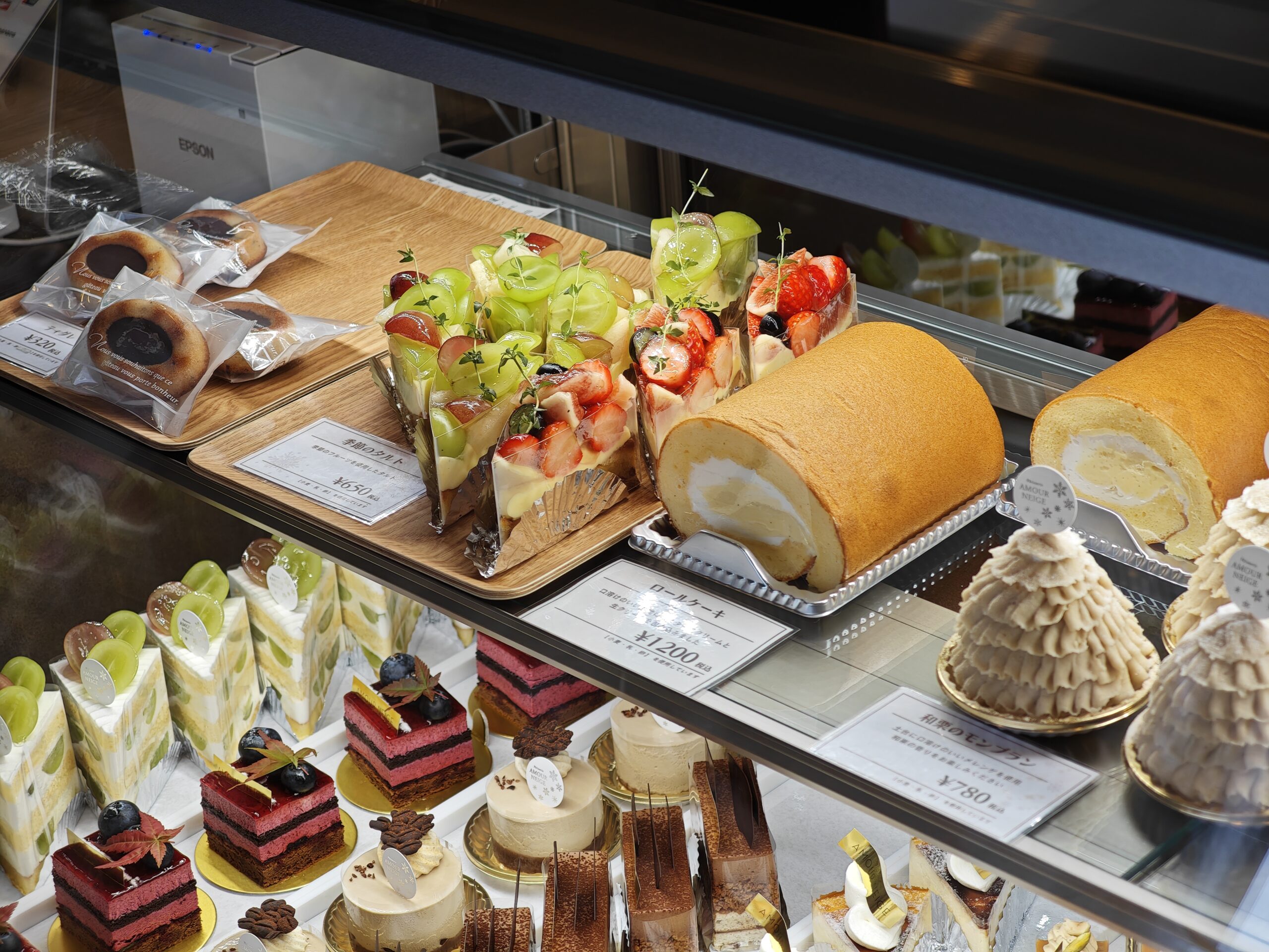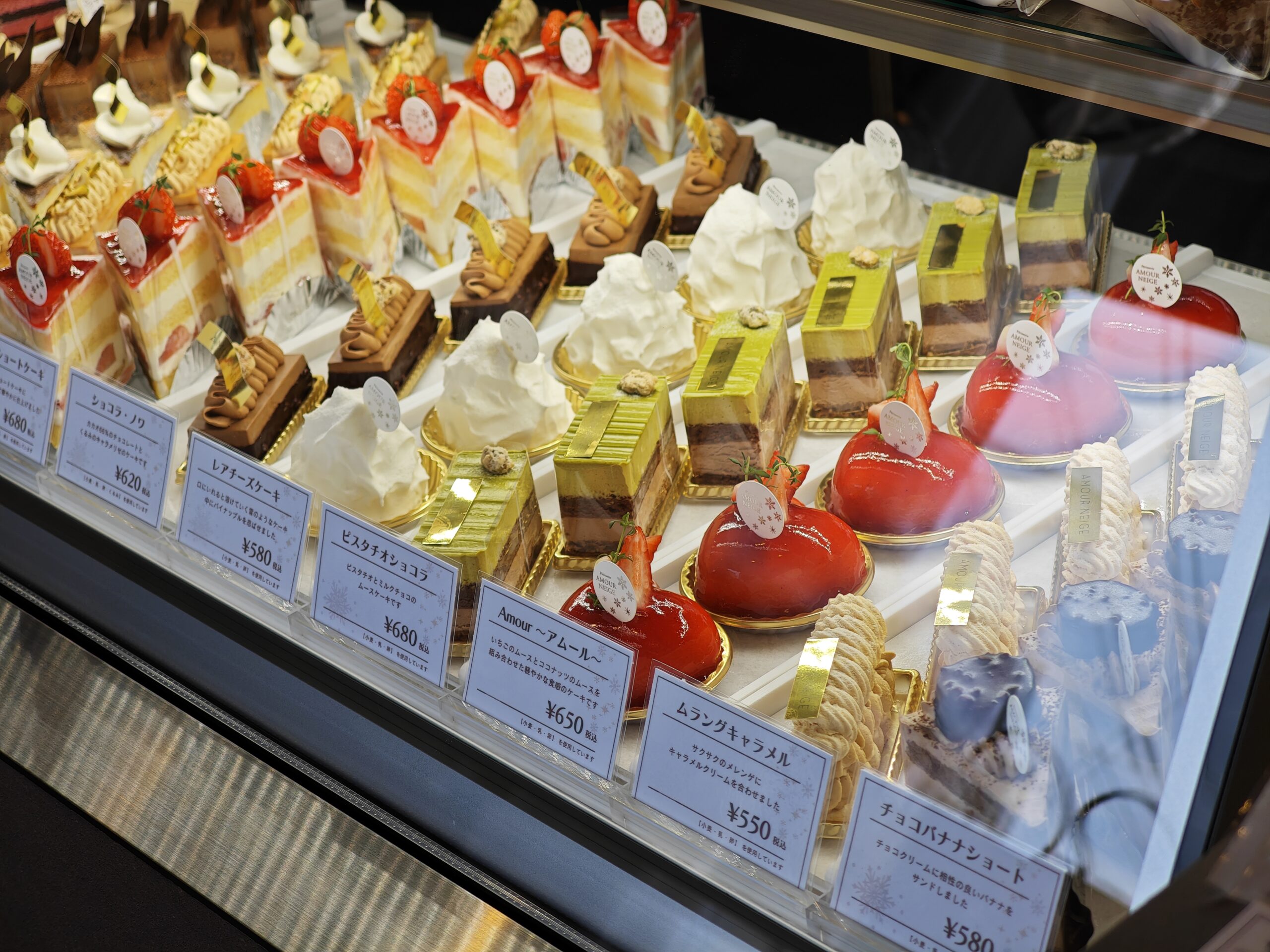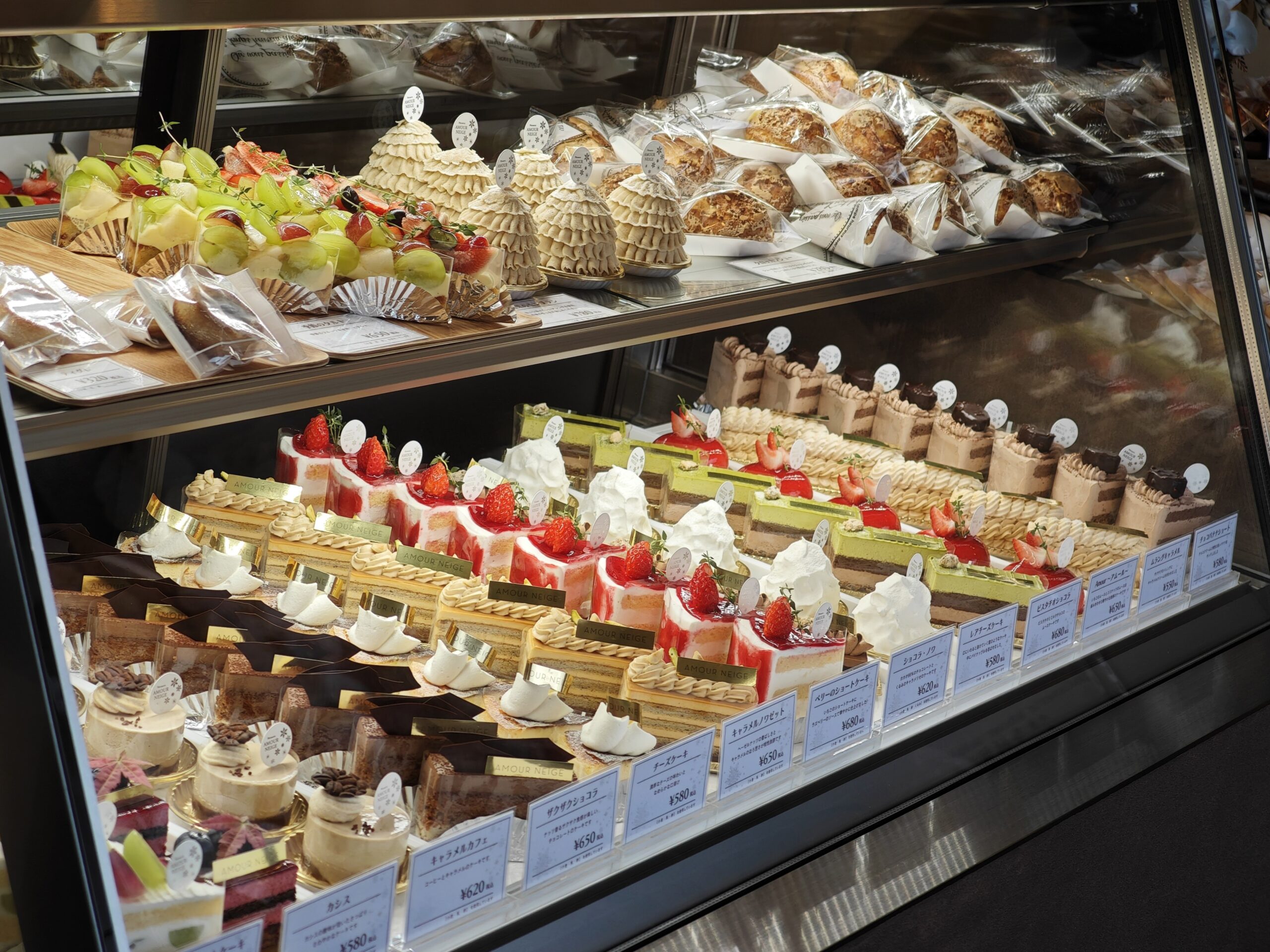 季節のフルーツや繊細なデコレーションなど、多彩なケーキが並びます。