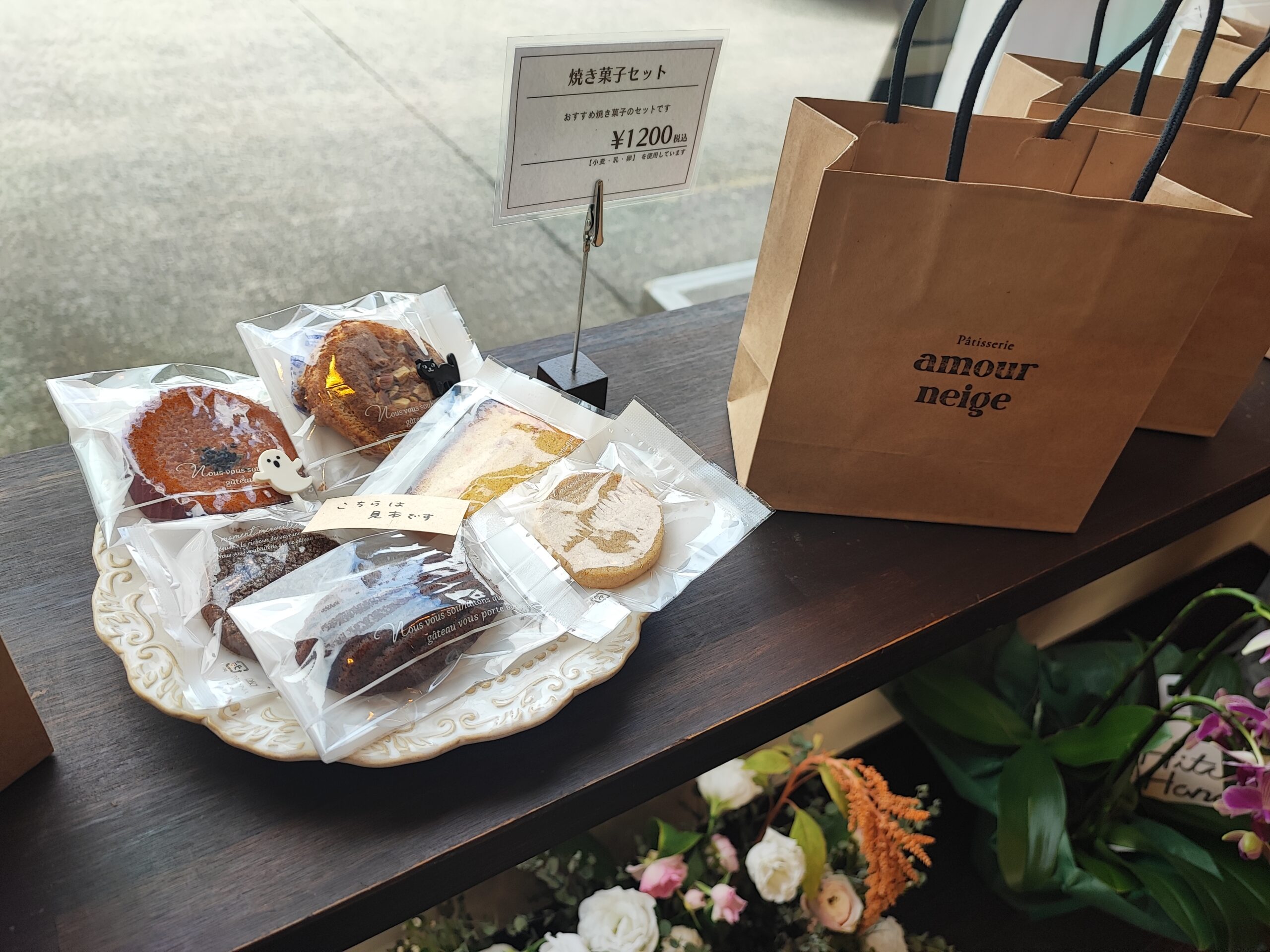 窓際には おすすめの焼き菓子を詰め合わせたセットもありました。