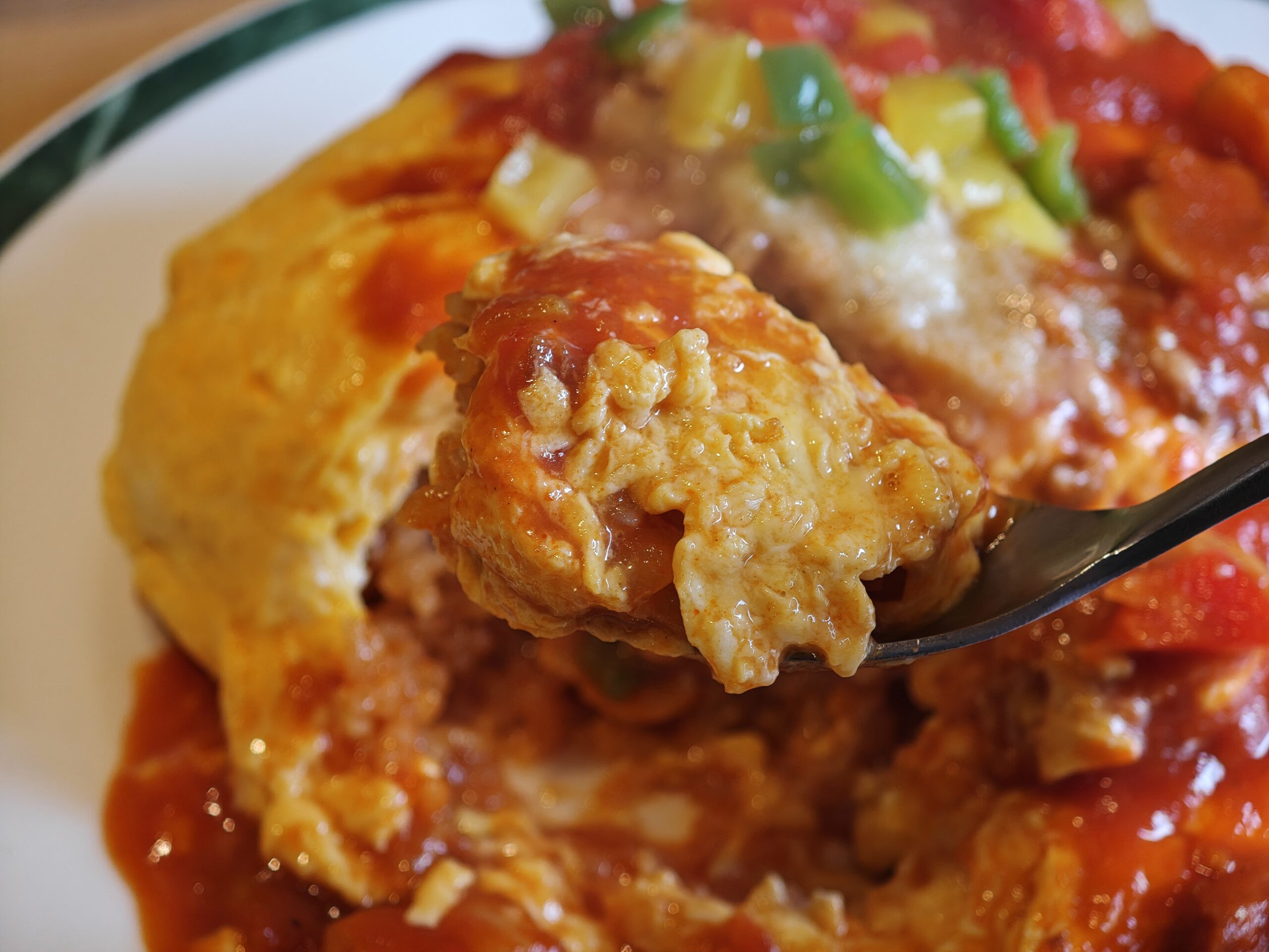 チキンライスの上に、ふわふわの卵がたっぷり!