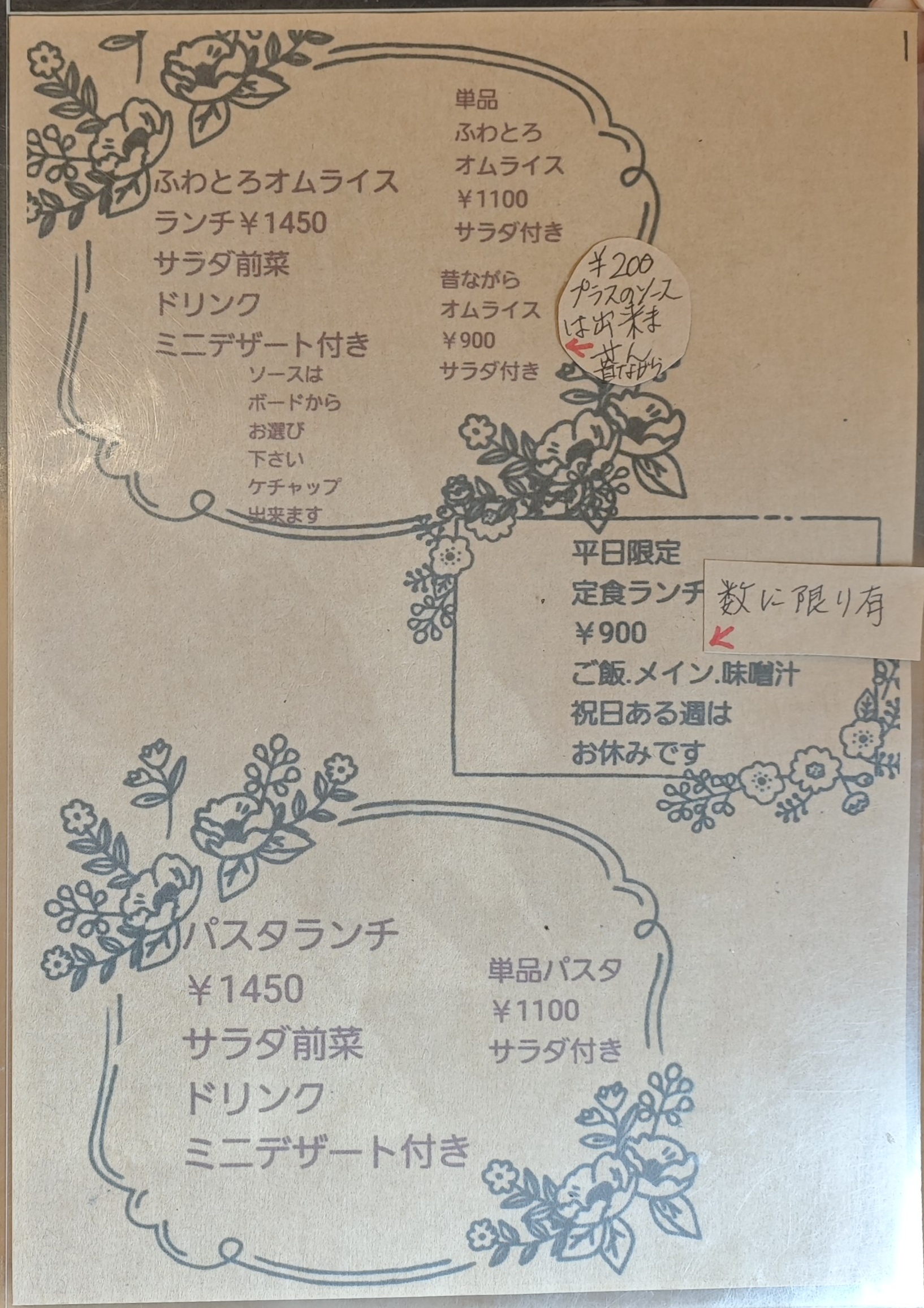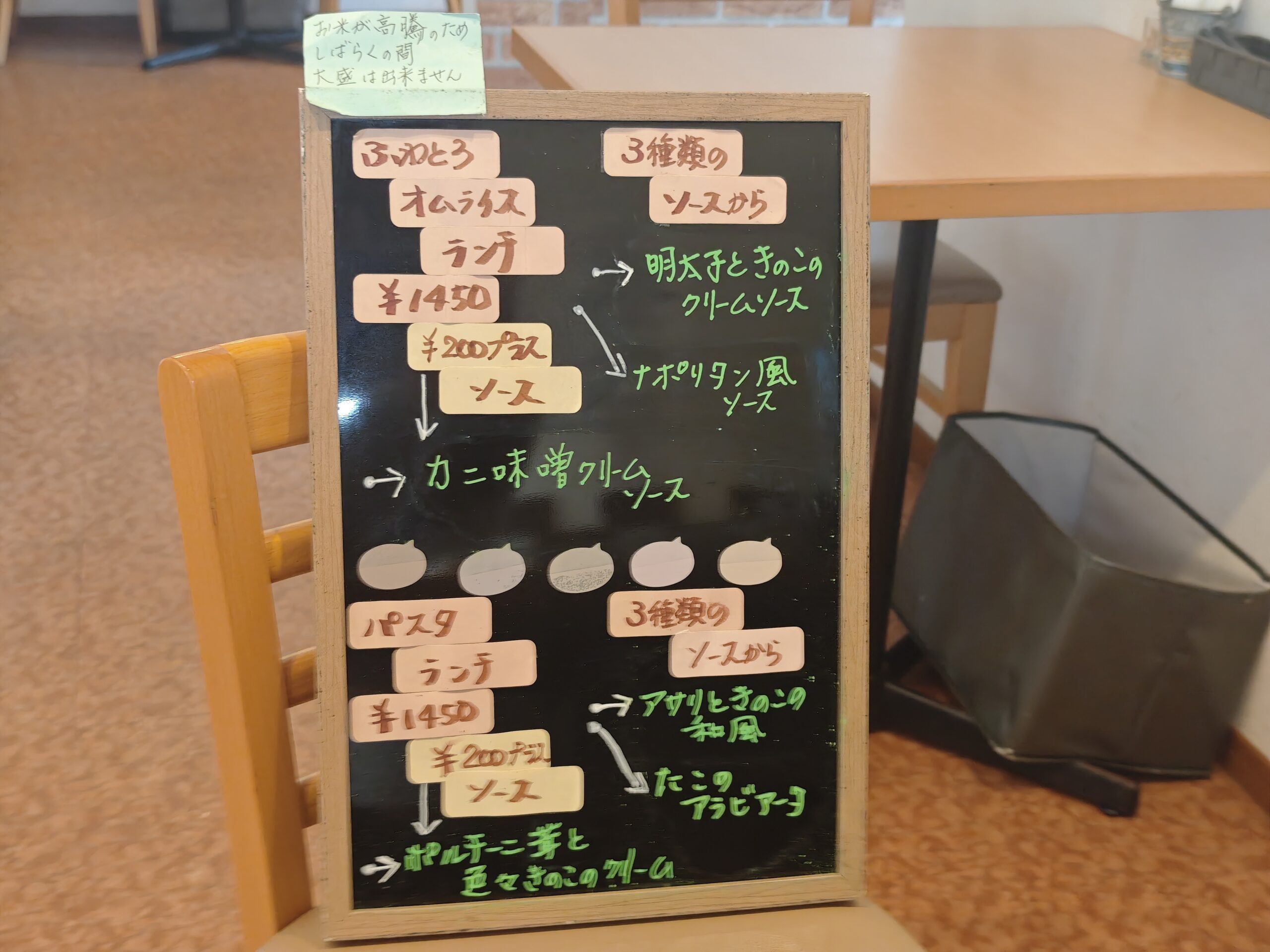 オムライス、パスタのソースは3種類から選択可