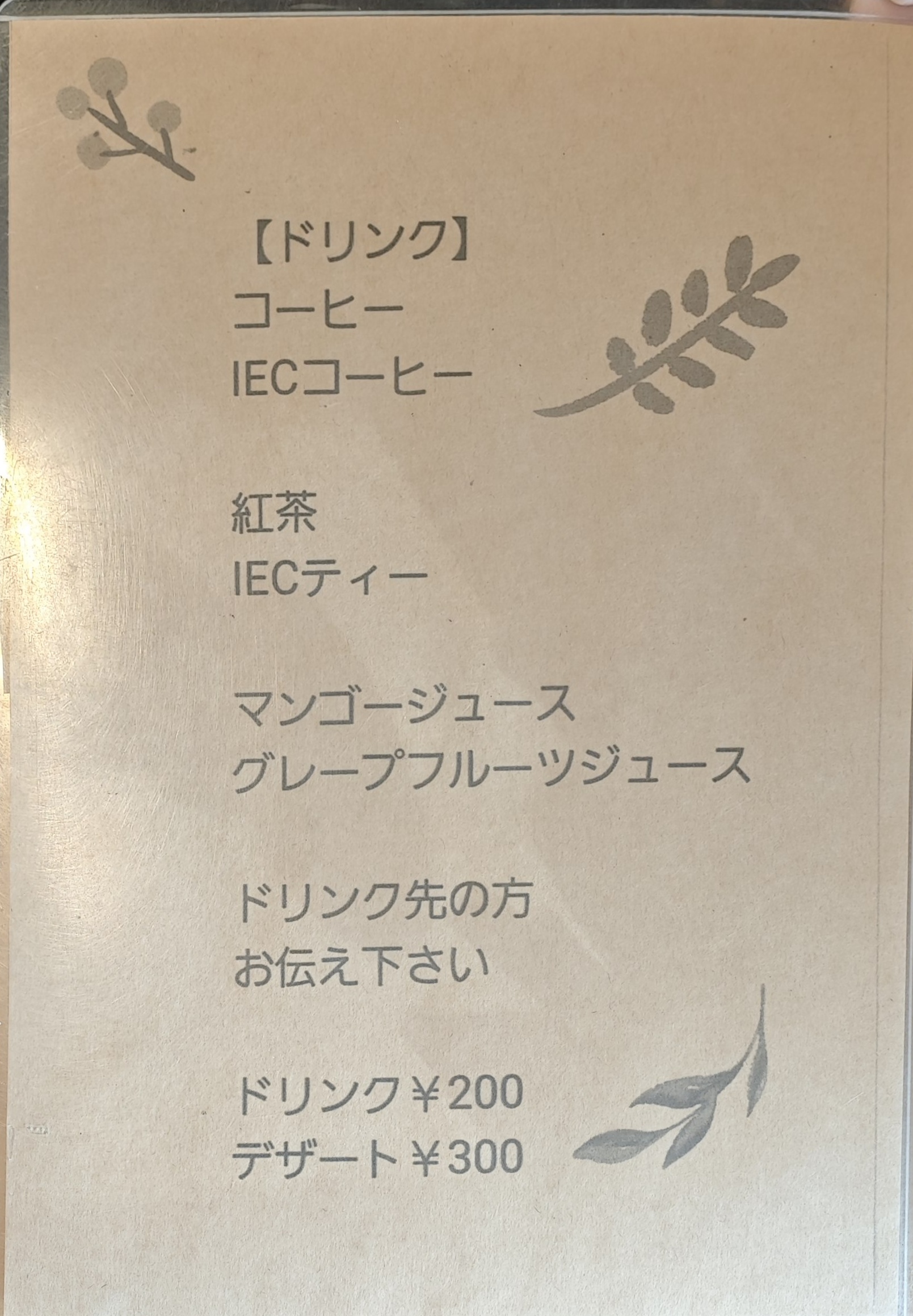 ドリンクは紅茶を選択。