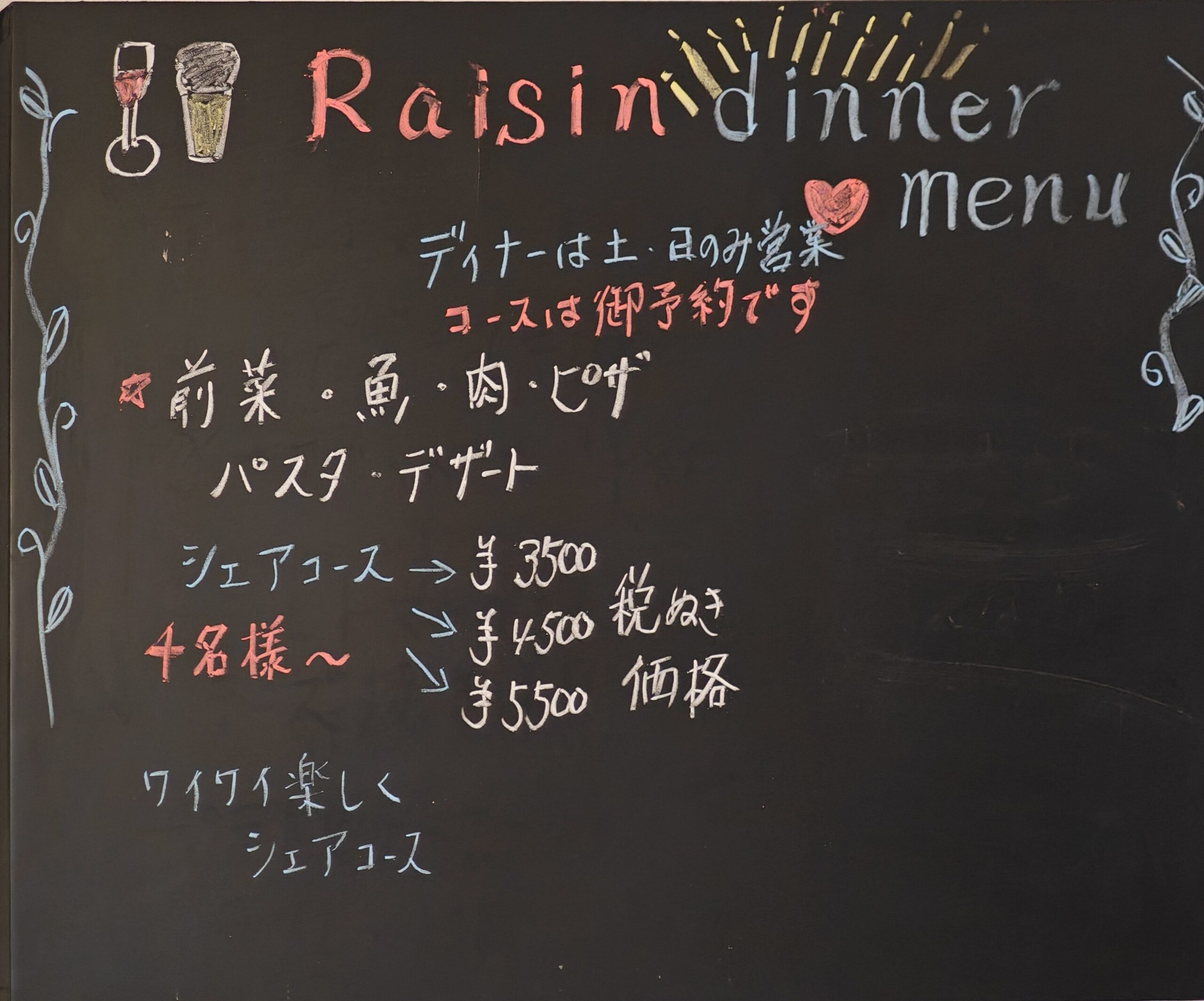 ディナーは土日のみ