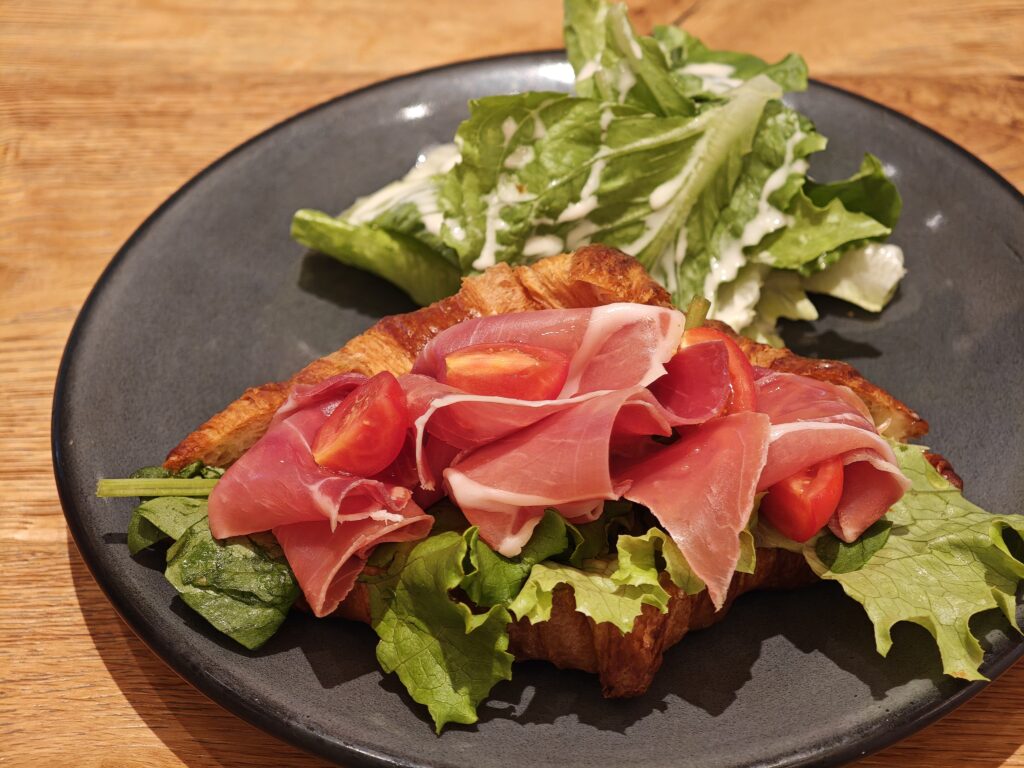 ほんのり甘いサクサクのクロワッサンと生ハムの塩味がマッチして美味。