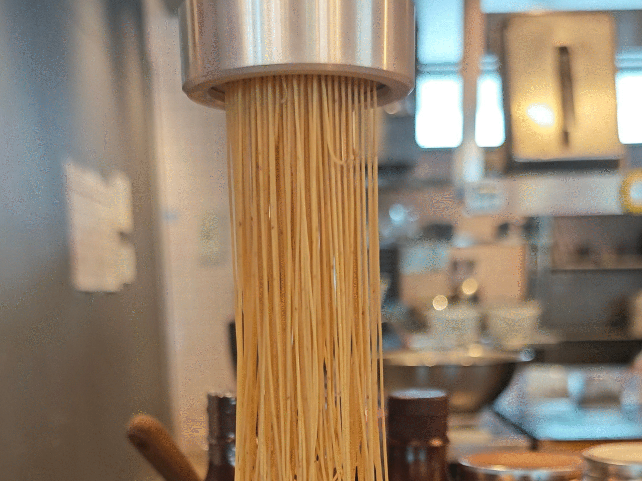 小麦粉100に対して水100というレシピで、水分を多く含んだしっとり・ふんわりな食感を目指しているそうです。