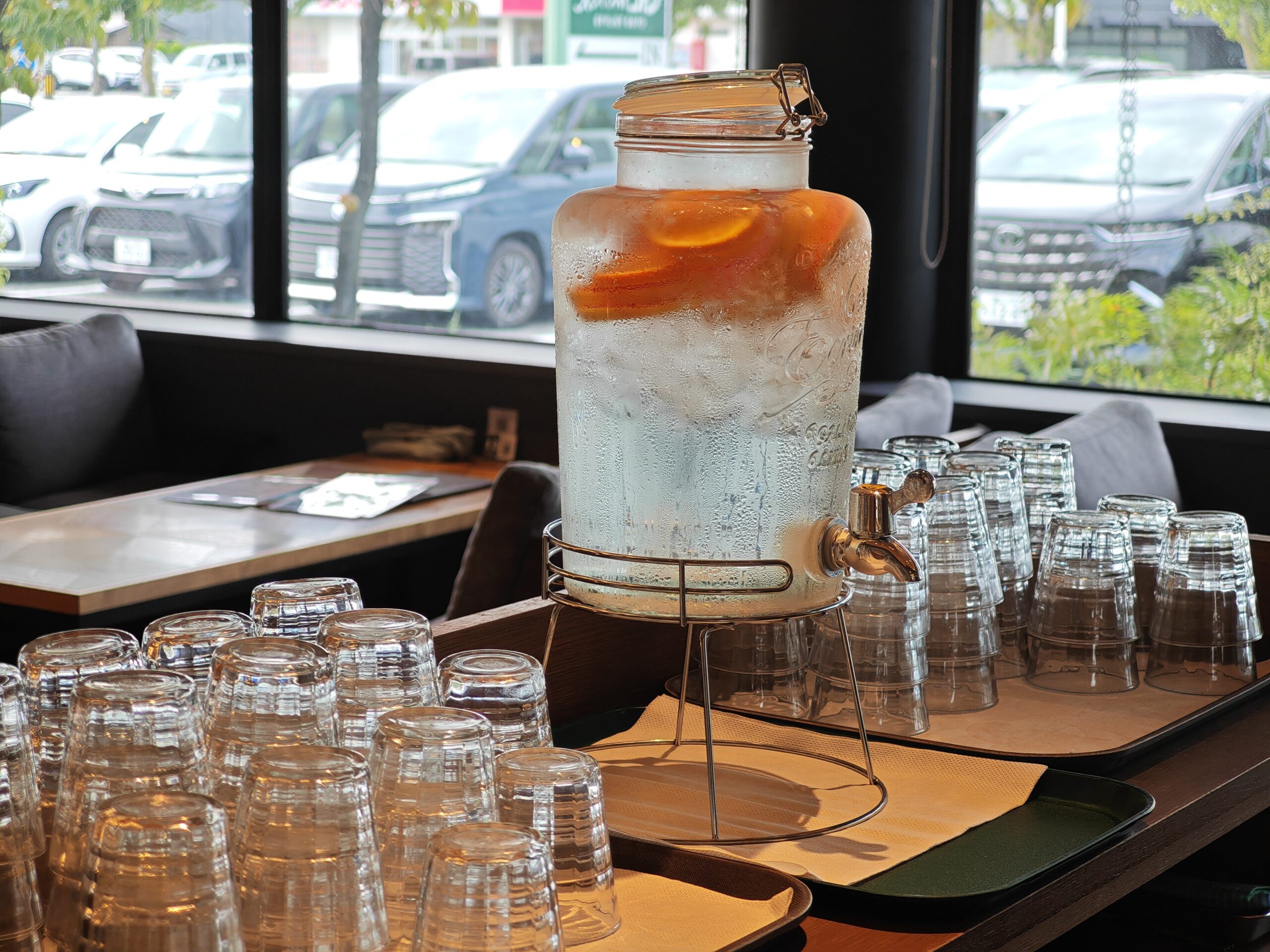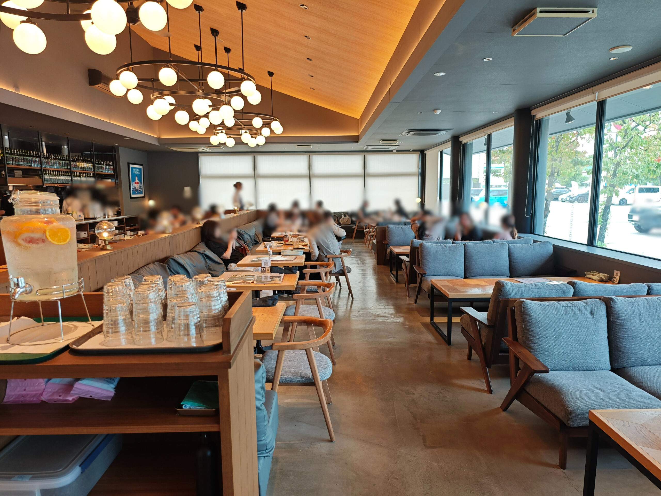 大きな窓から光が差し込み、明るく開放的な店内。