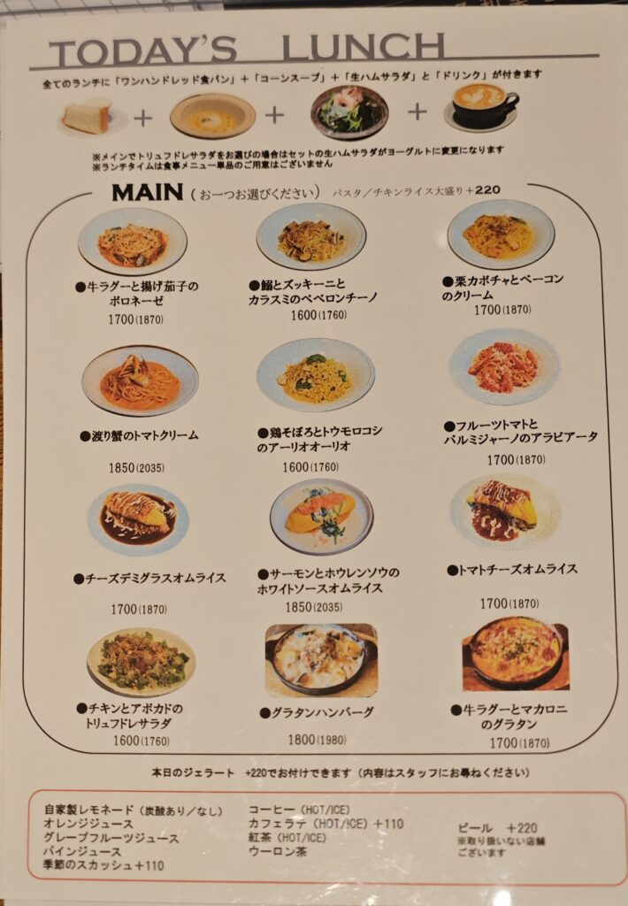 - パスタやオムライスなど“しっかり食事”も楽しめる
