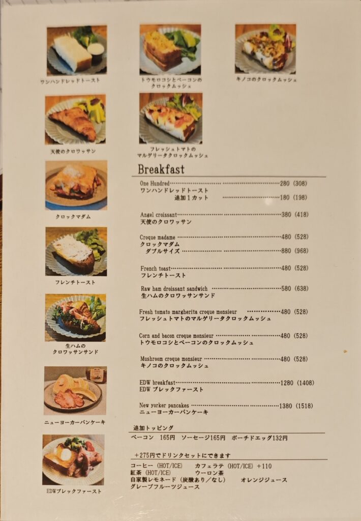モーニング・ランチ・ドリンクメニュー