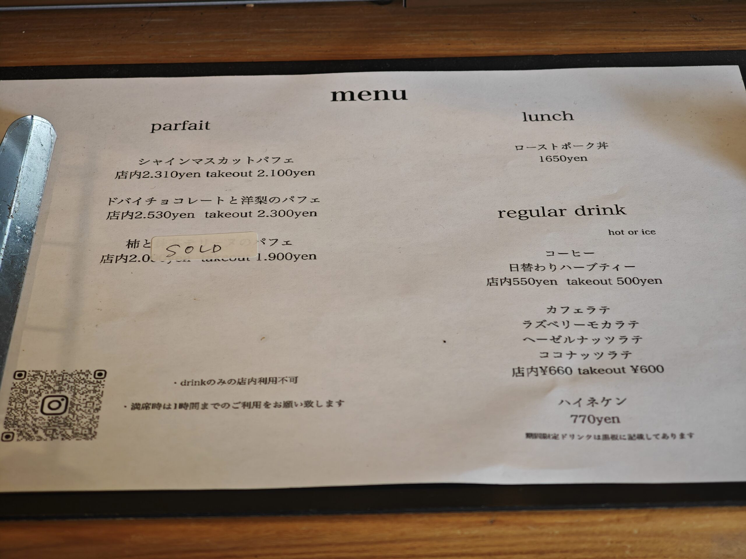 お店のメニュー表に記載はなく、Instagramでお知らせされています。