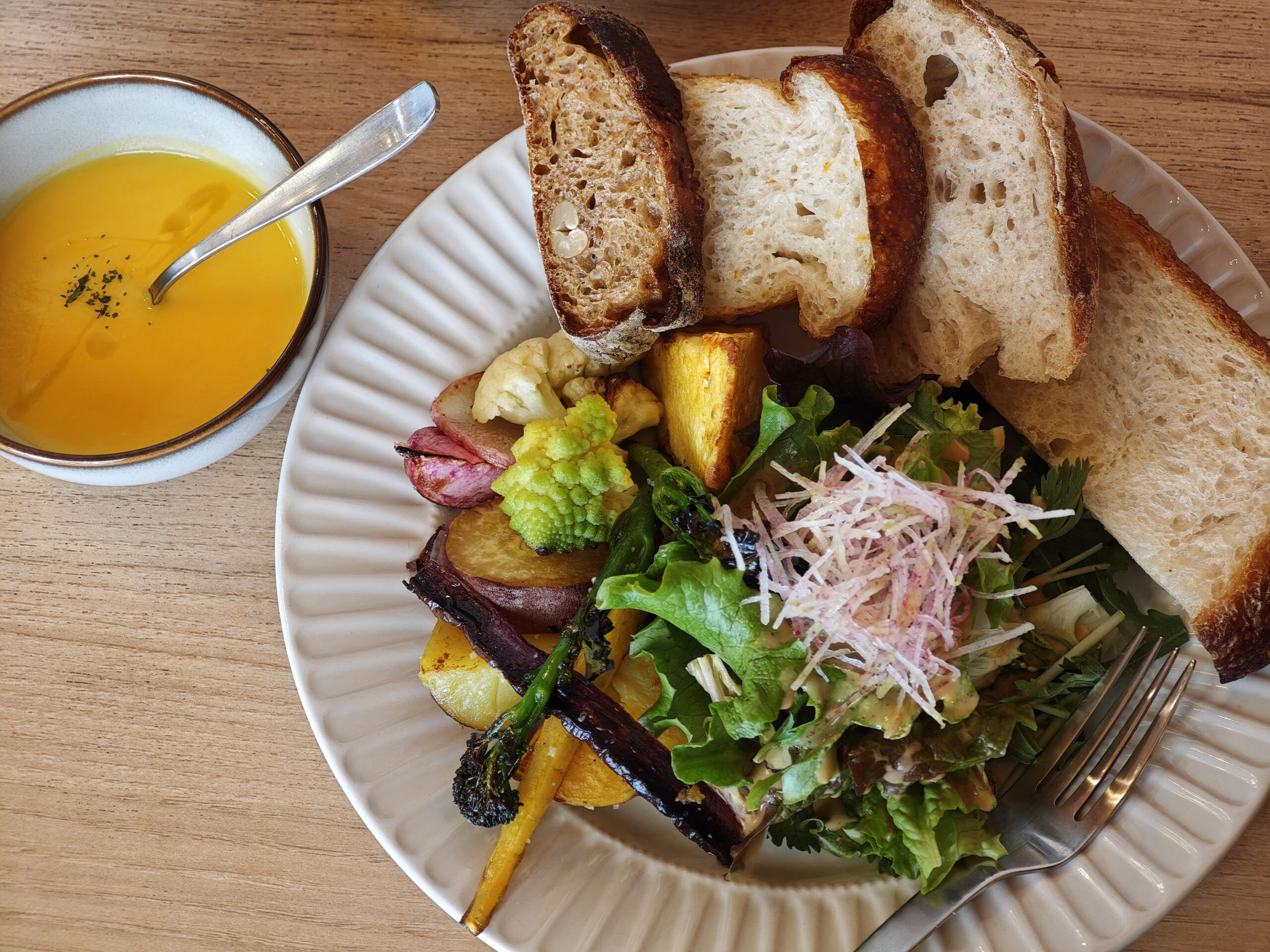 添えられていた無農薬野菜のグリルは、塩味がちょうど良く絶品…!
