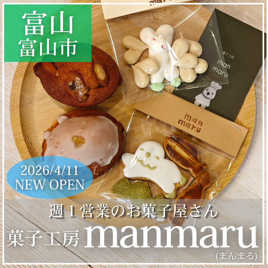 今日は2026年4月11日にオープンした、富山市婦中町にある「菓子工房manmaru(まんまる)」さんに行ってきました。