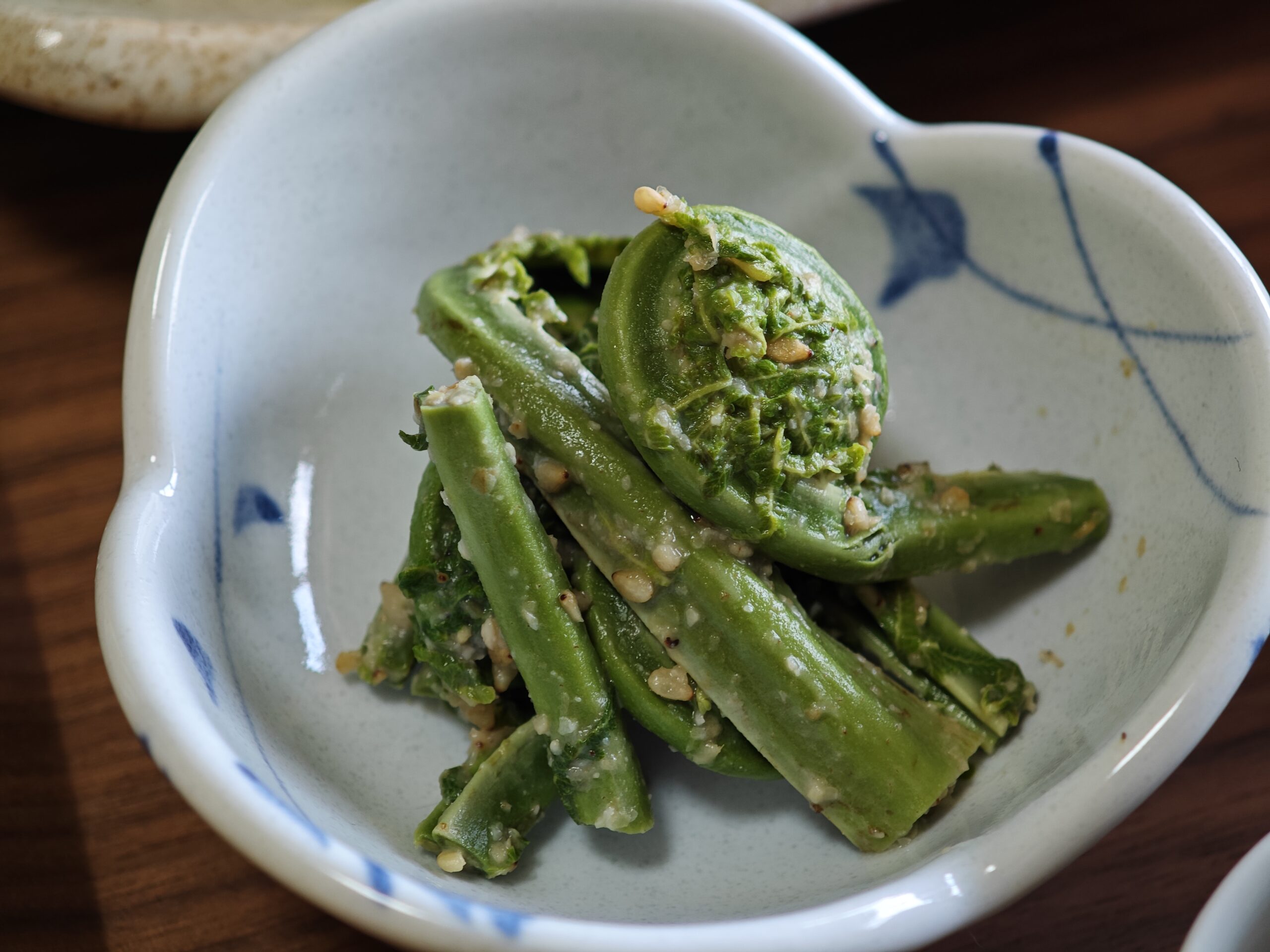 山菜は旬の時期に採れたものを使い、塩漬けなどで通年楽しめるよう工夫されています。