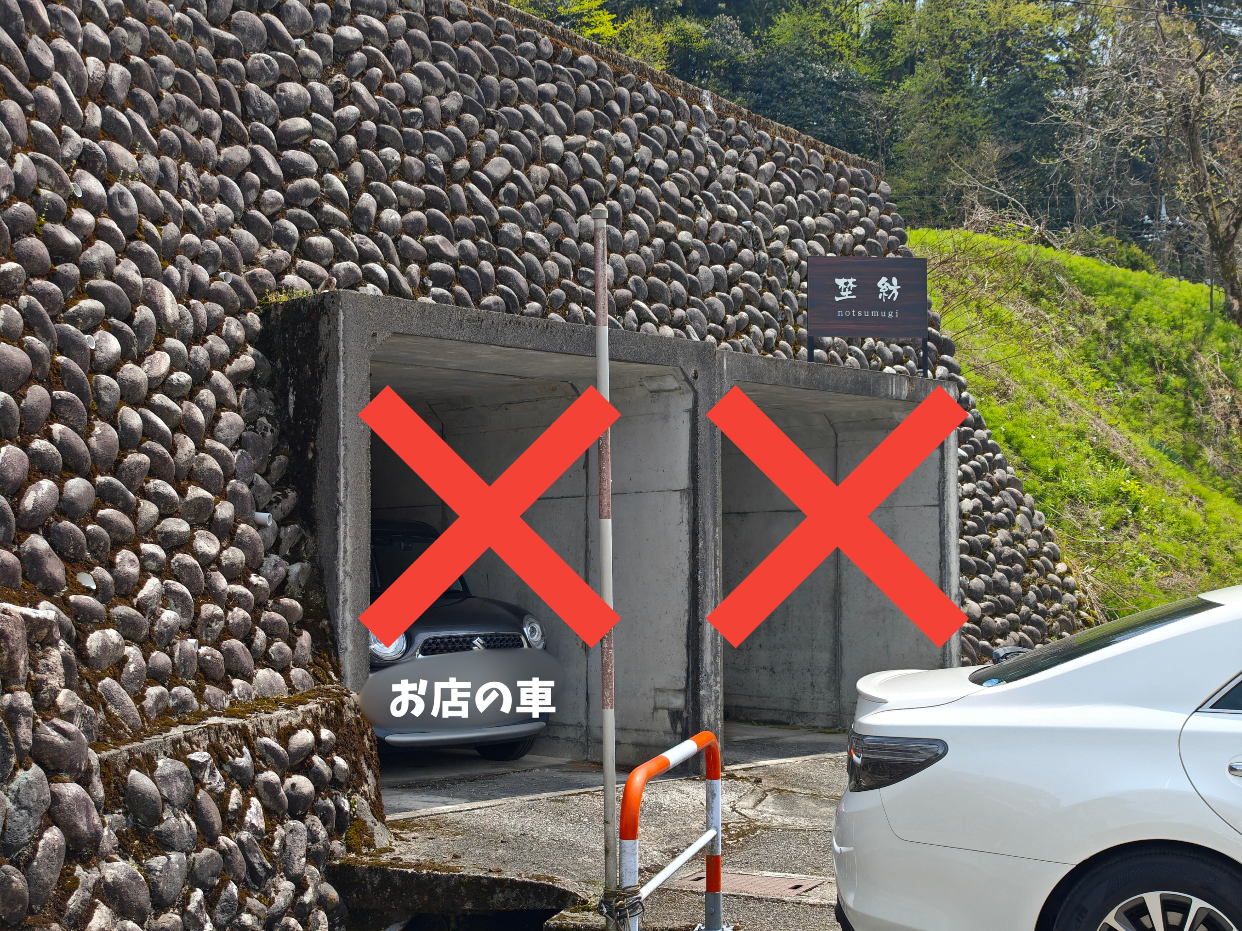 このスペースはお店の駐車場ではないため、駐車しないようご注意ください