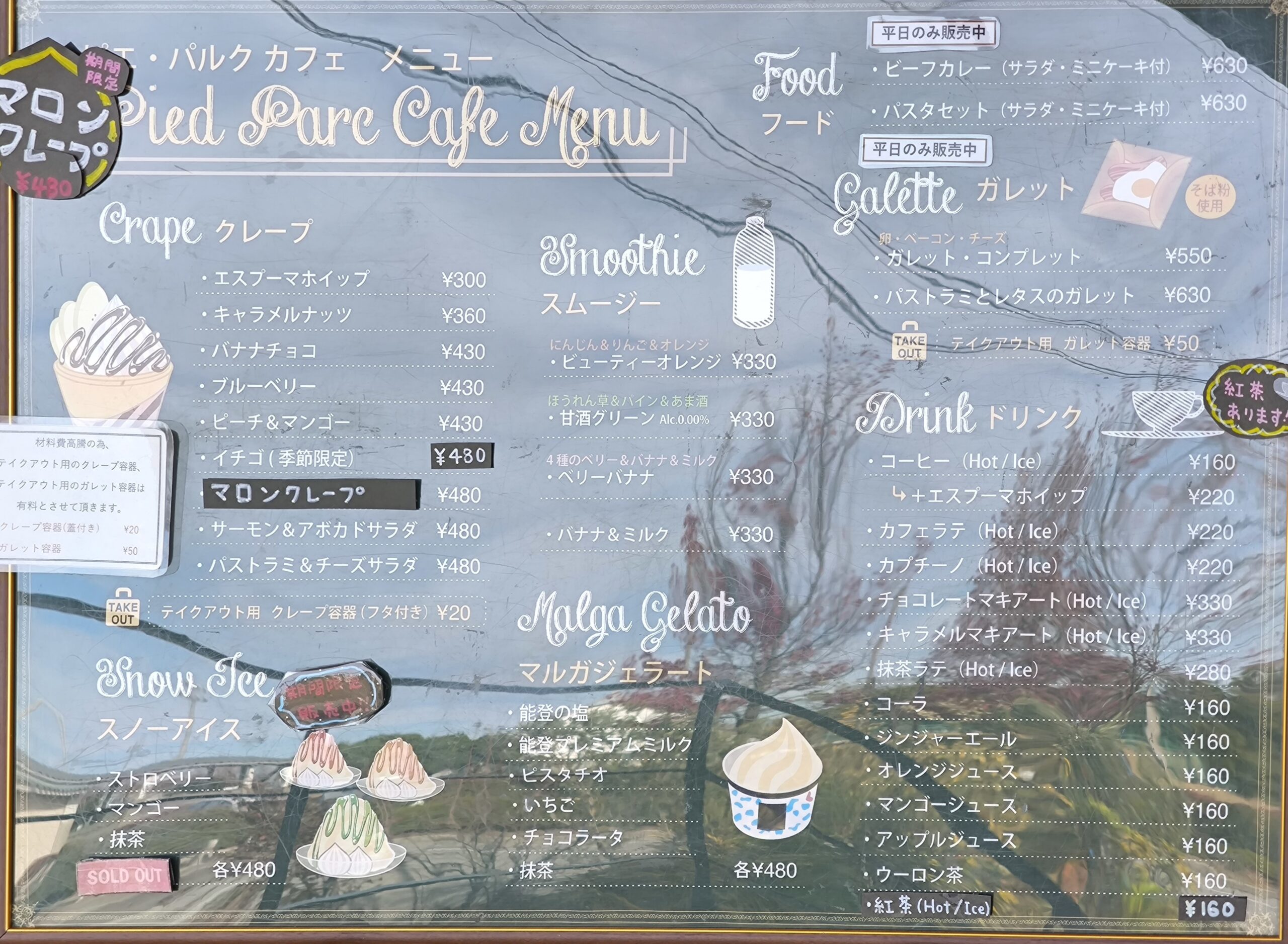 【ピエ・パルク・カフェ/富山市】カフェ×公園×足湯。リーズナブルなクレープやガレットが美味
