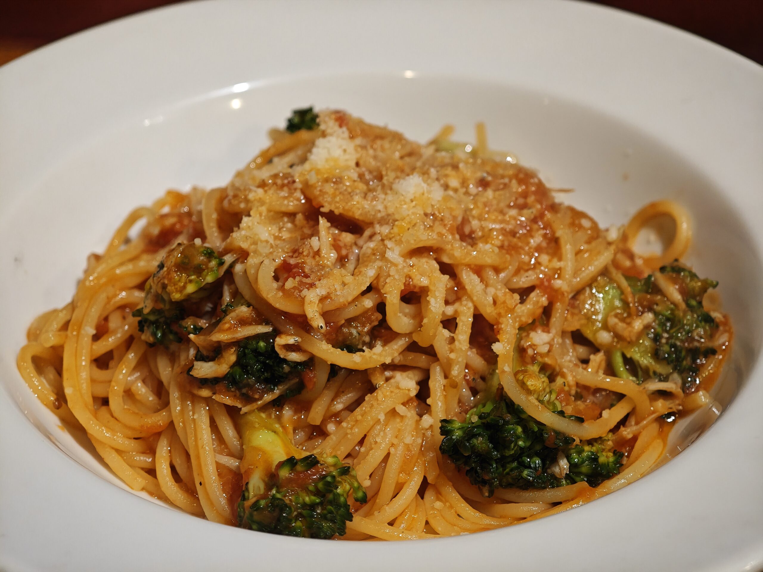 今回は「しらすとブロッコリーのトマトソースパスタ」にしました