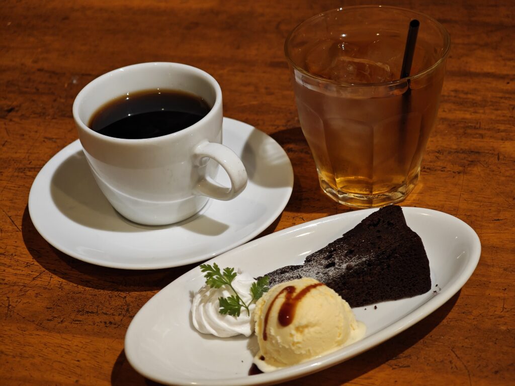 ミニドルチェはガトーショコラとアイス。