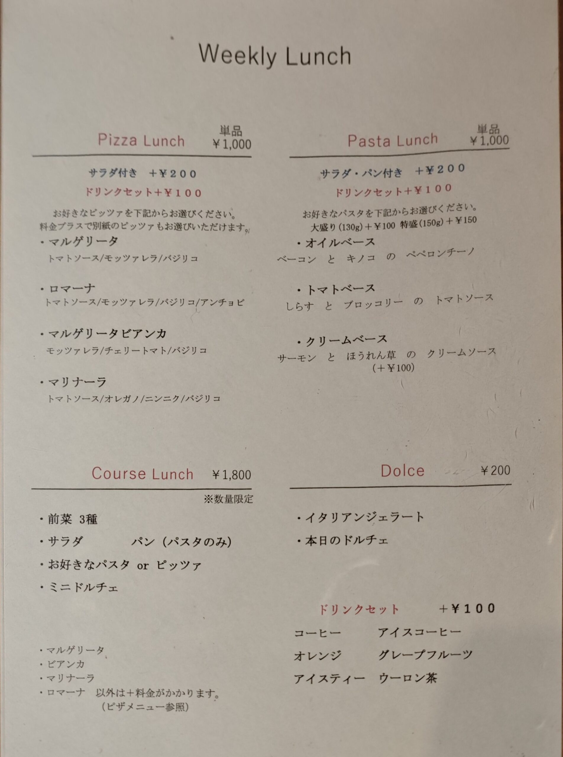 Pizza Launch+サラダ+ドリンク(計 税込1,300円)