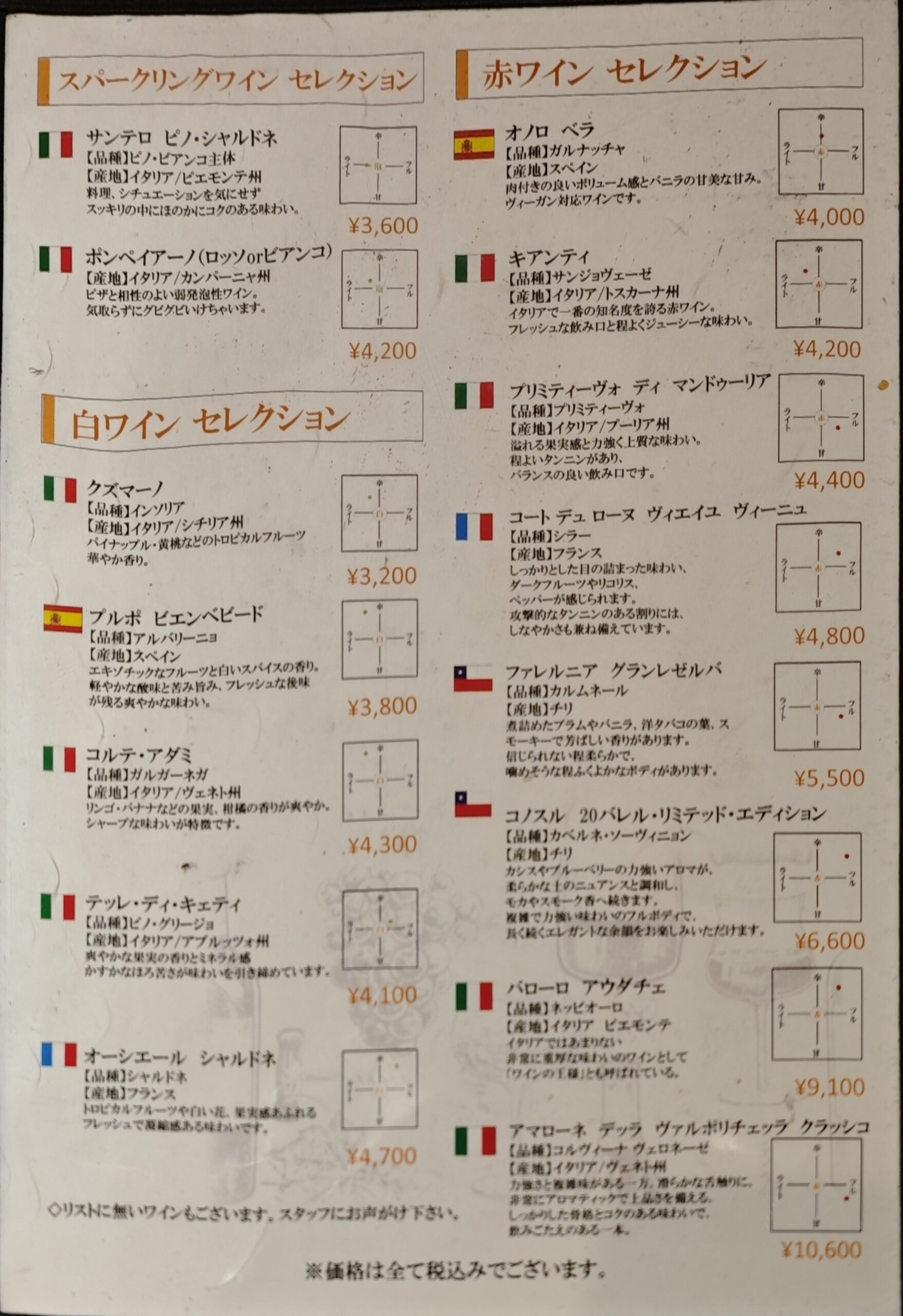ワインメニュー