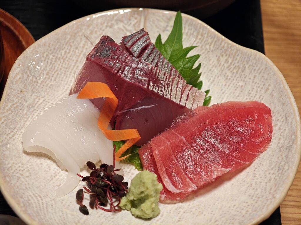 ※お造り三種盛りは2切れずつで800円。やや贅沢なお値段ですが、全体の質や雰囲気を考えると納得感があります。
