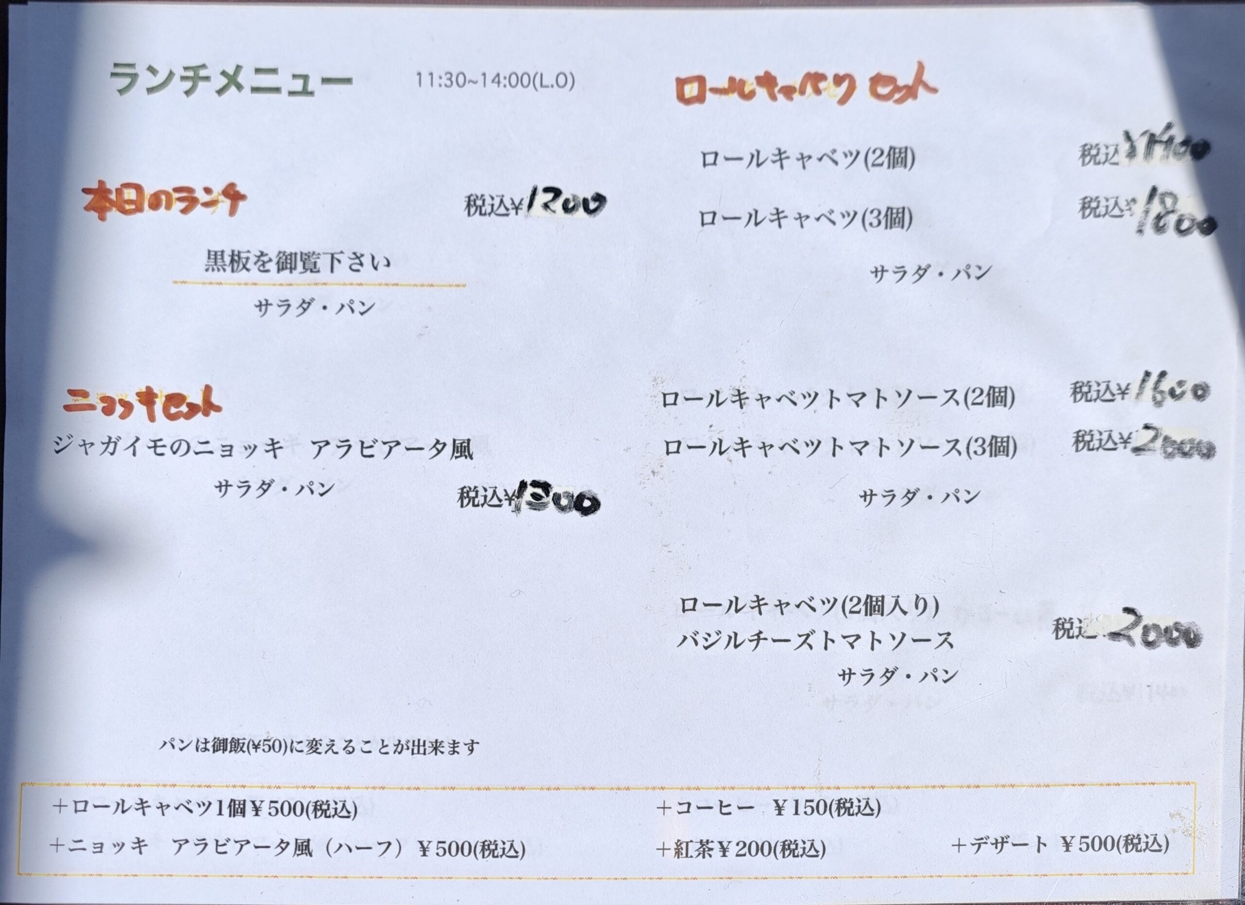 本日のランチ(税込1,200円)+ニョッキ(ハーフ)(税込500円)