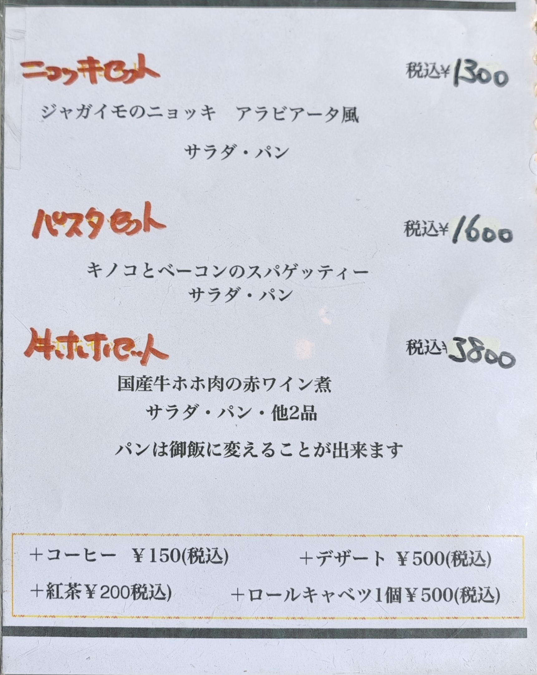 メニューを見ていると、下の方にハーフサイズのニョッキを発見。