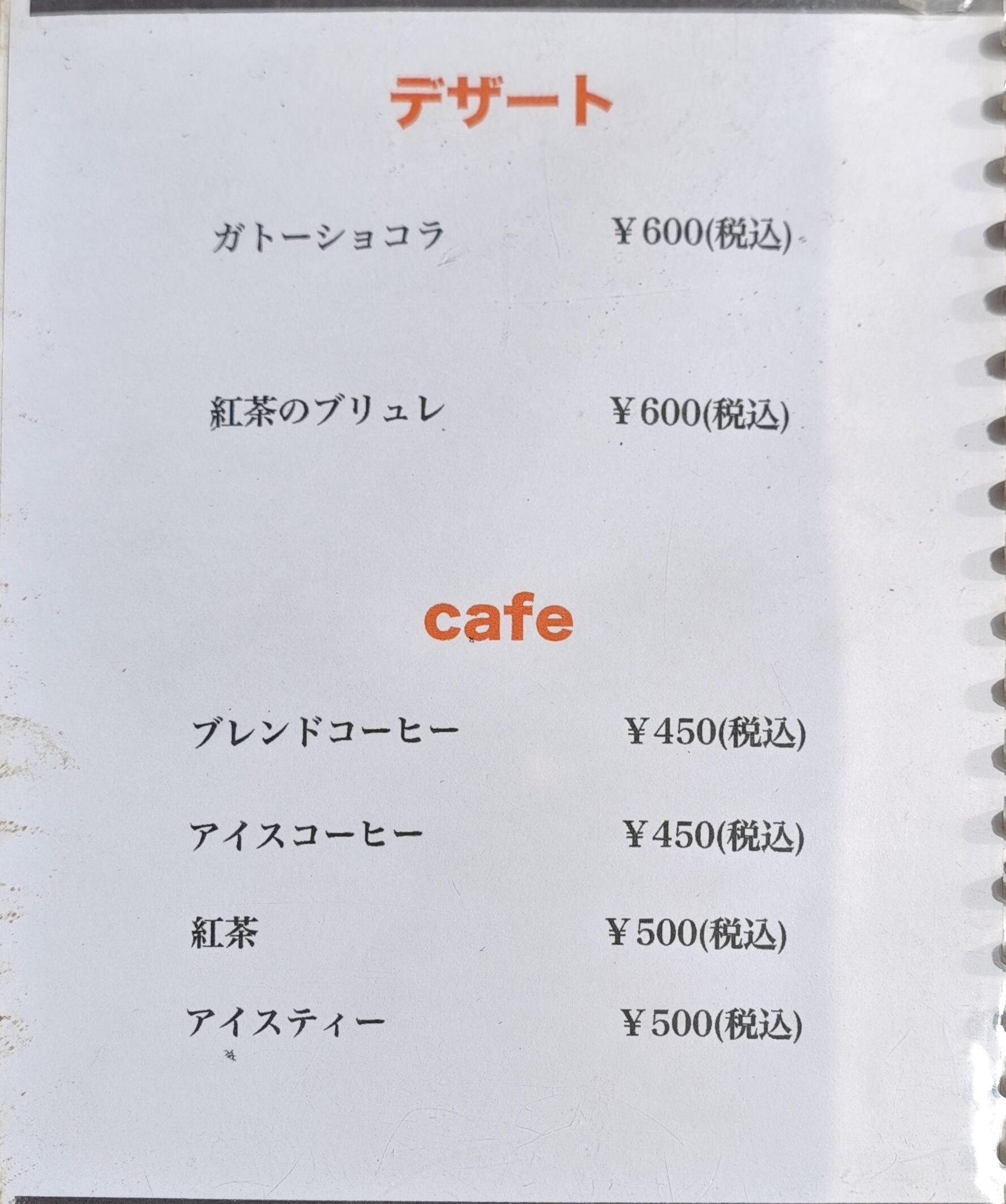 デザート(税込500円)+コーヒー(税込150円)